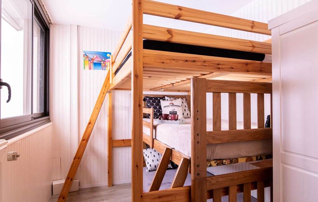 A bedroom with 3 bunk beds (2 x 90cm and 1 x 140cm).