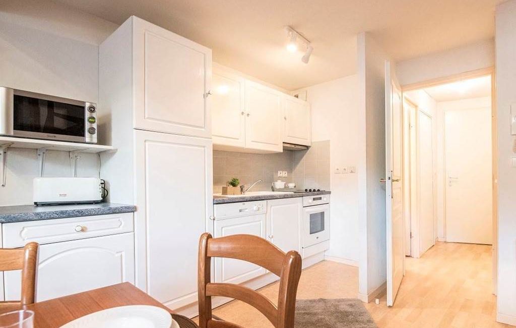 A fully-equipped kitchenette opening onto the living room (ceramic hob, microwave, grill, dishwasher)