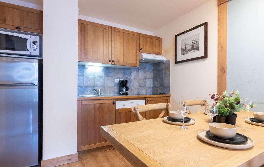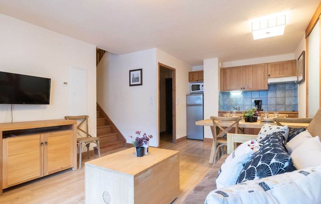 -Living room with 1 pull-out sofa bed (sleeps 2) and TV, opening onto a fitted kitchen (ceramic hob, microwave, dishwasher)