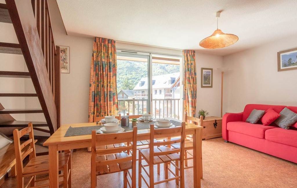 Rental of a 3-bedroom duplex flat for 8 people in the "Le Village des Thermes" residence near the Saint Lary cable car and thermal baths-2nd floor-49.30m²-South-facing balcony with uninterrupted views of the mountains.