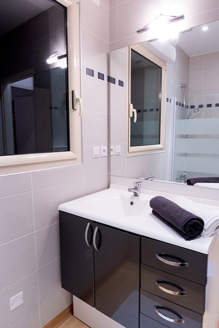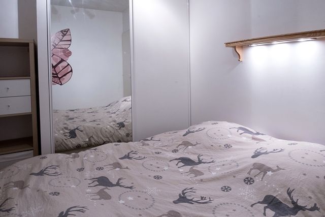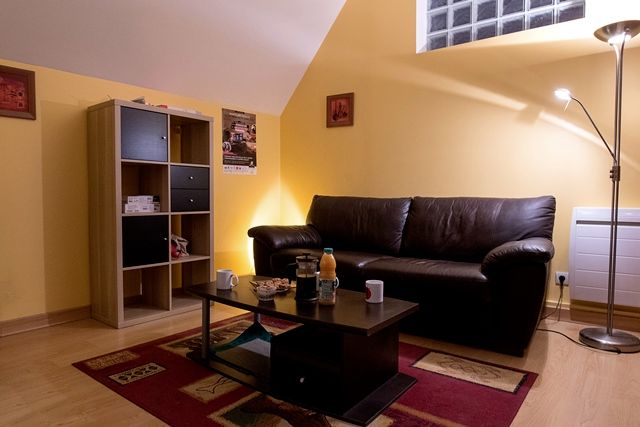 Small detached house accessible by a staircase and located above the technical premises (communal laundry room and private garages) with a large terrace comprising: a kitchen, a living area with a sofa bed for 2 people opening onto a balcony, a bedroom and a bathroom. One parking space is available.