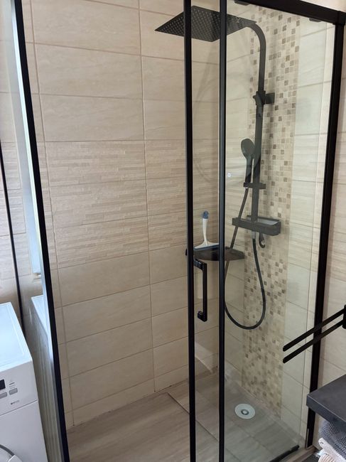 - Bathroom with 120x80 shower, washbasin and heated towel rail