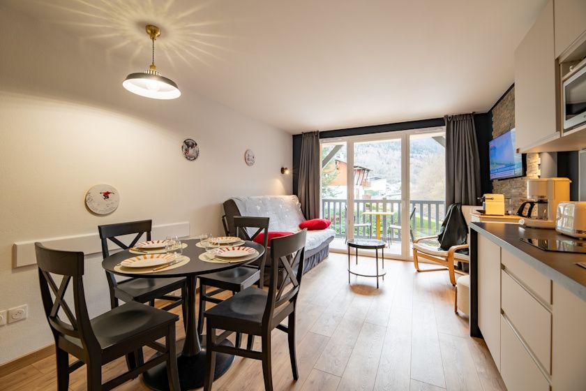 The flat is located in the Résidence Les Rives d'Aure, on the 1st floor with a lift, 1 minute from the thermal baths, the cable car and all the amenities in the town centre.