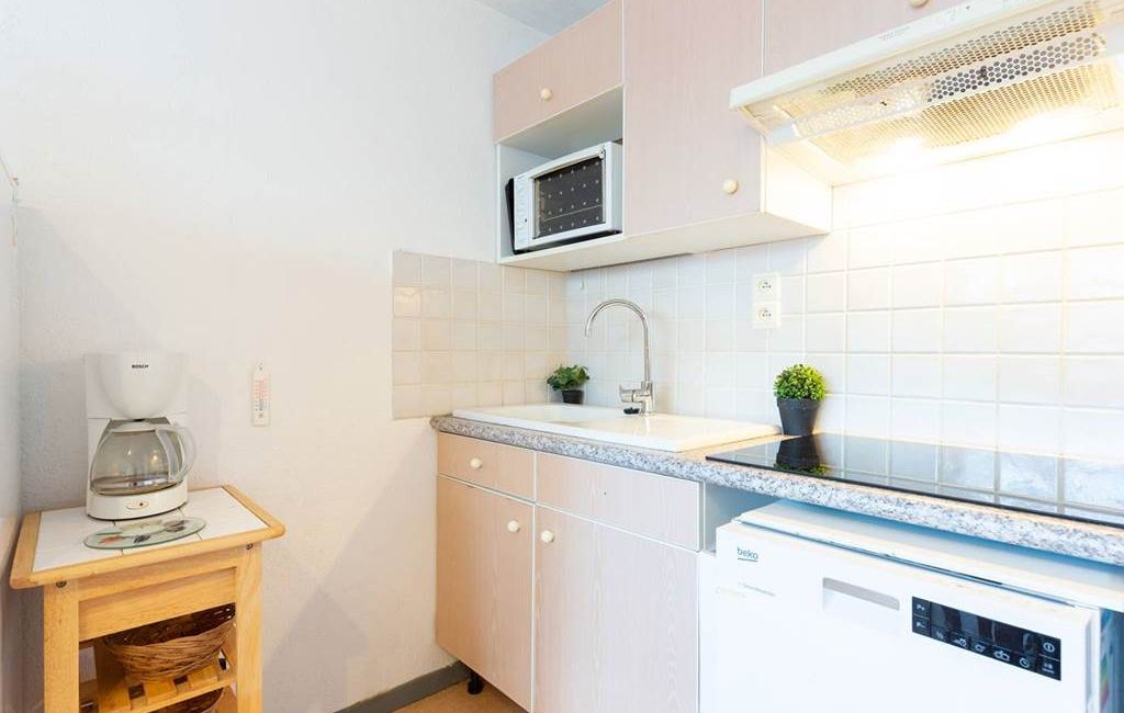 Piso situado en la residencia "Les Portes du Soleil" Planta baja / Terraza + pequeño jardín / Orientación sur / Superficie 33m² Entrada - 1 habitación con 1 cama doble - 1 rincón para dormir con 2 literas individuales, Cuarto de ducha / WC separado - Salón con 1 sofá cama doble y TV, Kitchenette con mini-horno y microondas, lavavajillas, lavadora, frigorífico+congelador - Parking exterior - Guardaesquís