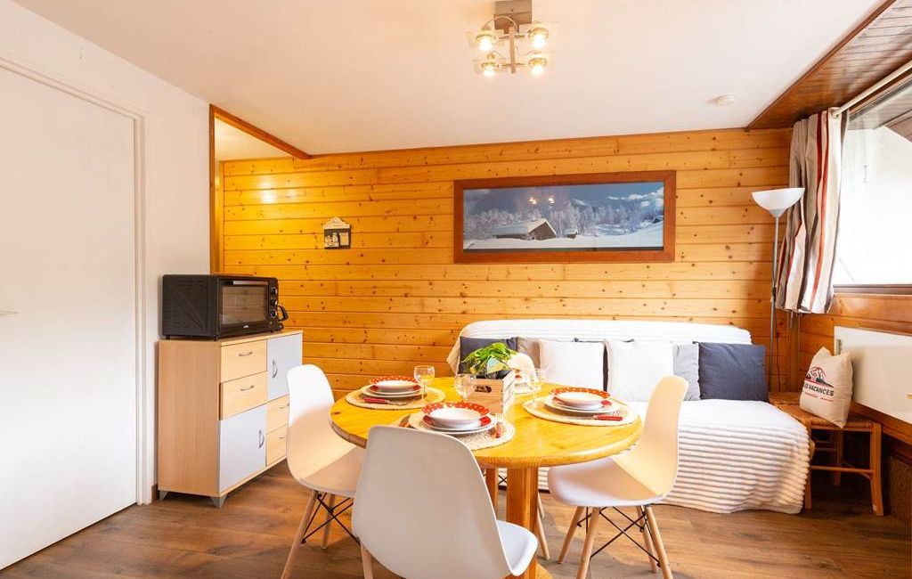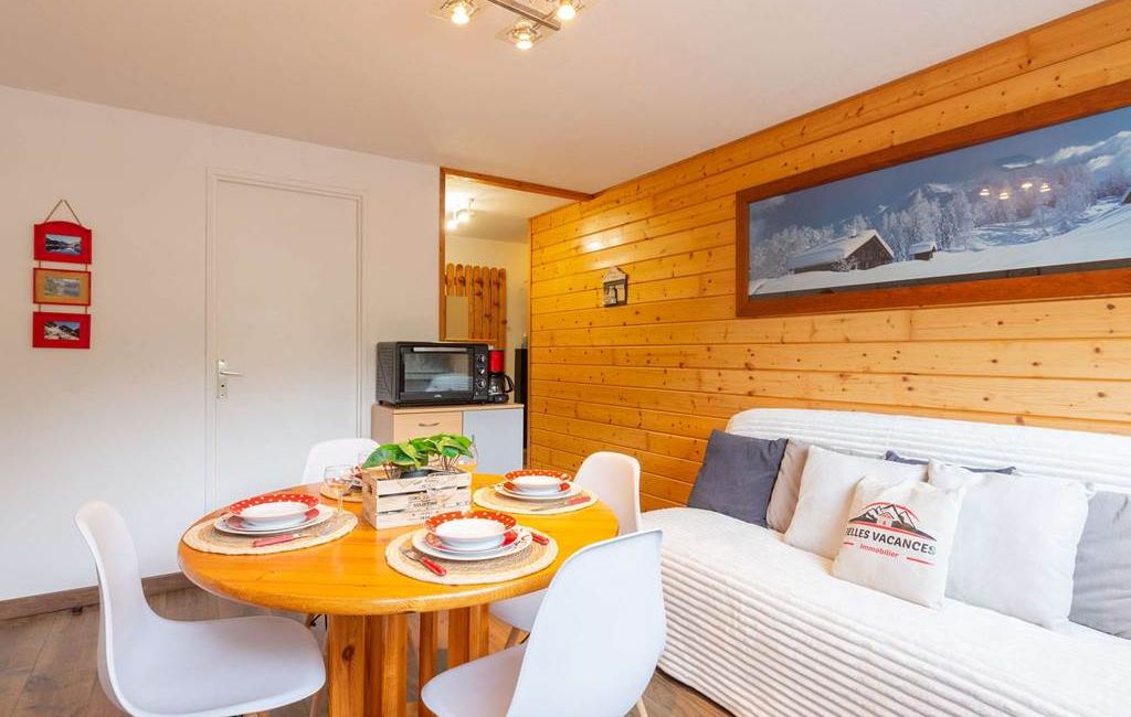 Este piso para 4 personas se encuentra en la Résidence Aurettes y está cerca de los comercios y del teleférico, con la calle comercial principal a 100 m y el teleférico a 190 m.