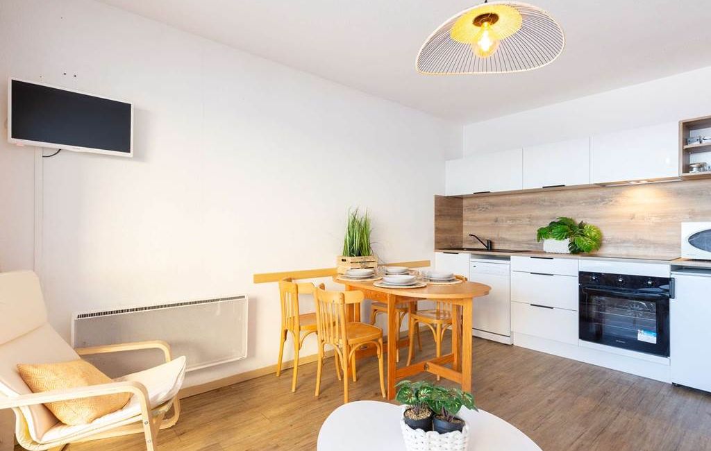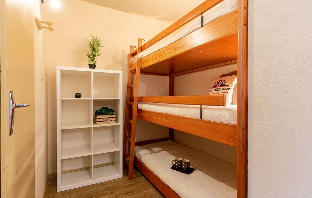 Ce mignon studio pour 5 personnes se compose d'une entrée avec 3 lits superposés.