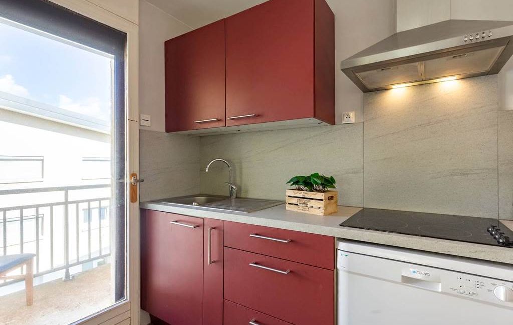 * d'une cuisine équipée ouverte sur le séjour avec balcon,