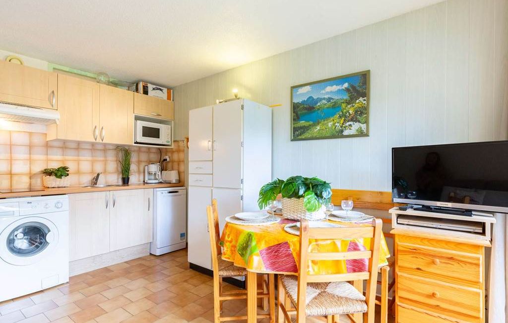 Au premier étage, l'appartement offre une vue imprenable sur les montagnes des Pyrénées depuis son balcon orienté plein sud. Il comprend un coin cabine, parfait pour un enfant, offrant ainsi un espace intime et cosy. Deux lits doubles viennent compléter l'aménagement, garantissant des nuits reposantes après une journée bien remplie.