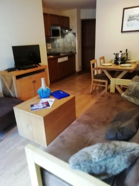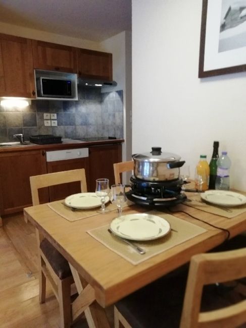 Couchages : 1 chambre avec 1 grand lit en 140, 1 coin montagne (dans l'entrée), 1 chauffeuse, 1 lit bébé parapluie, service raclette, à fondue. 1 Parking sous-sol, laverie au sein de la résidence.