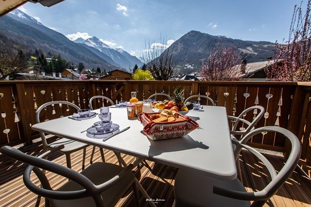 - Terrasse bois privative de 11m²avec mobilier de jardin, protégée par un store avec vue imprenable sur la station et les Pyrénées,