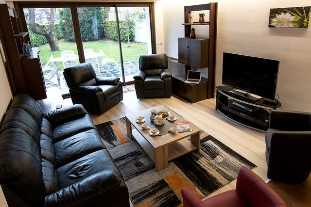 - Rez de chaussée : Une grande entrée côté rue et une côté cour, une cuisine spacieuse entièrement équipée, une pièce réservée aux enfants avec TV, un WC, un grand séjour/salle à manger avec une cheminée donnant sur une terrasse et le jardin. Espaces "nuit" : toutes les chambres peuvent être équipées en lit de 160 ou en 2 lits de 80.