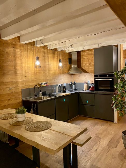 ✔ Cuisine : Entièrement équipée : petit frigo, plaques vitrocéramiques, lave-vaisselle, micro-ondes, machine à café Nespresso, bouilloire, ustensiles de cuisine