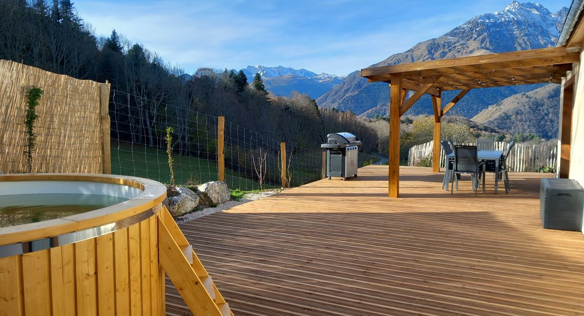 Détendez-vous face au somptueux massif de l’Arbizon dans votre gîte tout confort pour 8 personnes. Vous pourrez admirer la nature environnante depuis la grande pièce de vie (salon, salle à manger et cuisine complète) ou à l’extérieur. Sur la terrasse de presque 100 m², vous pouvez vous relaxer autour d’un barbecue ou dans le BAIN NORDIQUE. À la nuit tombée, profitez de l’espace brasero en contrebas de la terrasse pour vous réchauffer au coin du feu. Le jardin est entièrement clôturé. Toutes les charges (eau, électricité, bois et gaz) sont incluses.