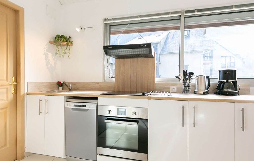 D'une cuisine équipée ouverte sur le séjour avec un coin repas