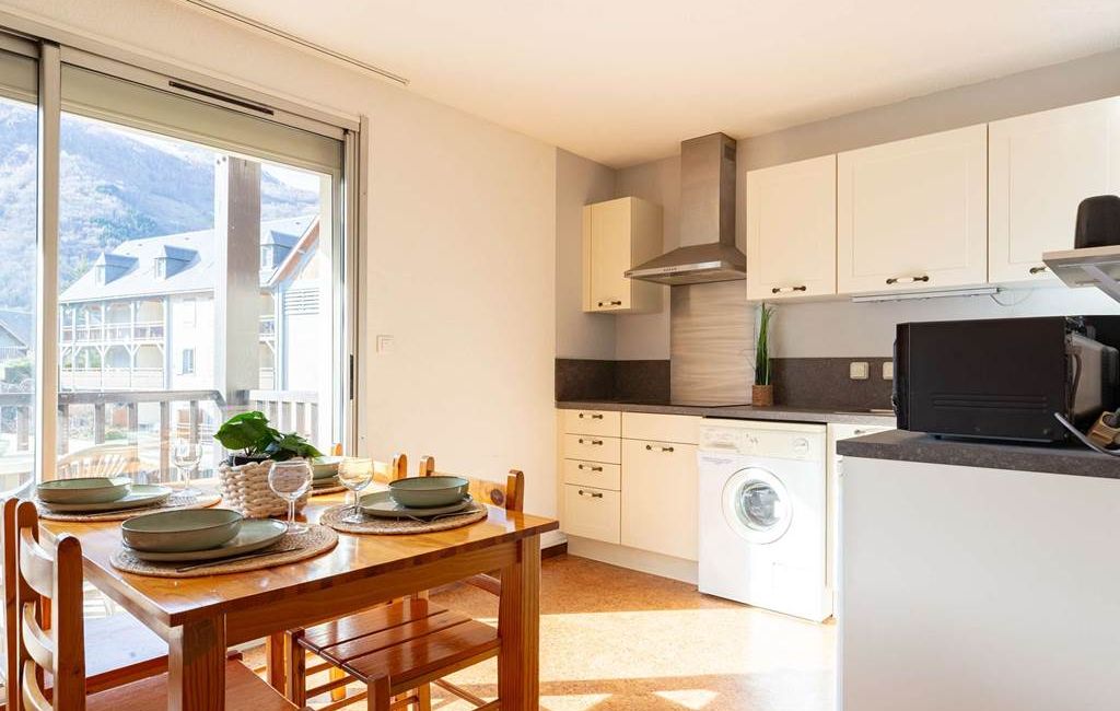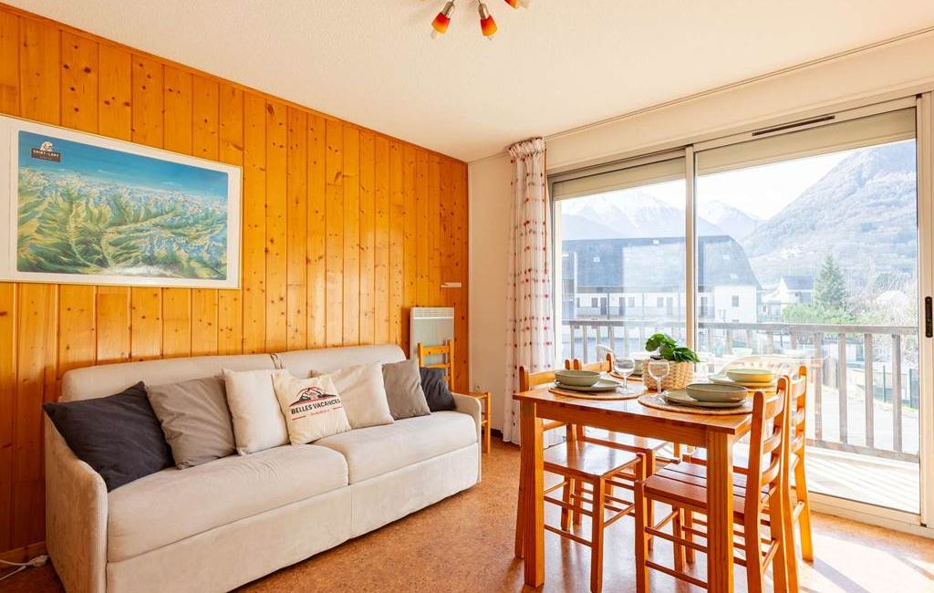 Situé au 1er étage du bâtiment D de la résidence « Le Village des Thermes », à l’entrée de Vielle-Aure, ce logement offre un cadre agréable et fonctionnel.